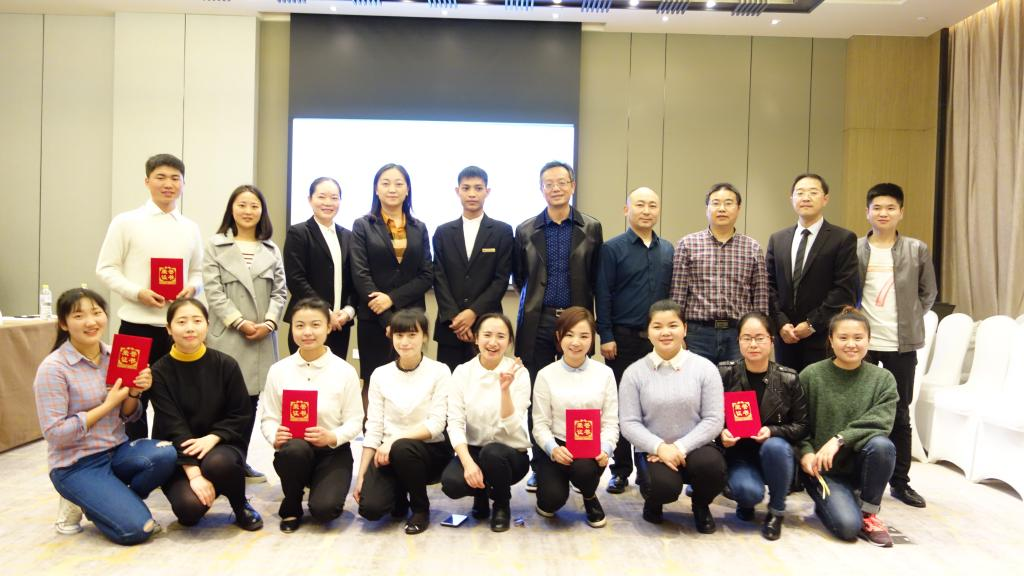 评为点评参赛选手,黄果树迎宾馆副总经理刘琴女士赞扬了同学们在比赛中不俗的表现和实习工作中努力的付出,同时也希望同学们能在以后的生活中多锻炼,勤加练习,保证能在以后的工作中更加完美地展现风采。并希望同学们学会把握细节,踏实工作,努力总结得失并去改善,才能在以后的工作中取得优异成绩。