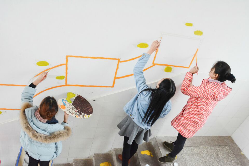 星火支教成员、青山小学教师墙绘