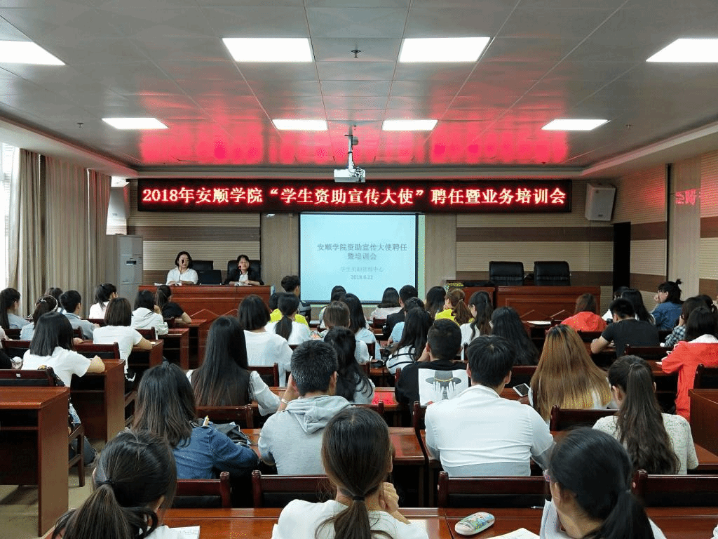 为更好地开展我校学生资助宣传工作,秉着“保证学生不因家庭经济困难而放弃学业”的资助理念,2018年6月22日下午,学生资助管理中心在特教大楼七楼会议室开展安顺学院2018年“学生资助宣传大使”暨业务培训会。培训会由谢卿主讲,资助中心工作人员、各学院学生资助宣传大使100余人参加了培训会。