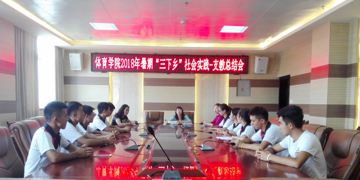 8月28日中午,体育学院“乡村振兴青春闪光”暑期社会实践团队在特教大楼六楼会议室召开2018年暑期“三下乡”社会实践---黄果树民族中学教育实践总结会。体育学院院长邓文红、副院长刘宁、孙春利及全体队员参加本次会议。