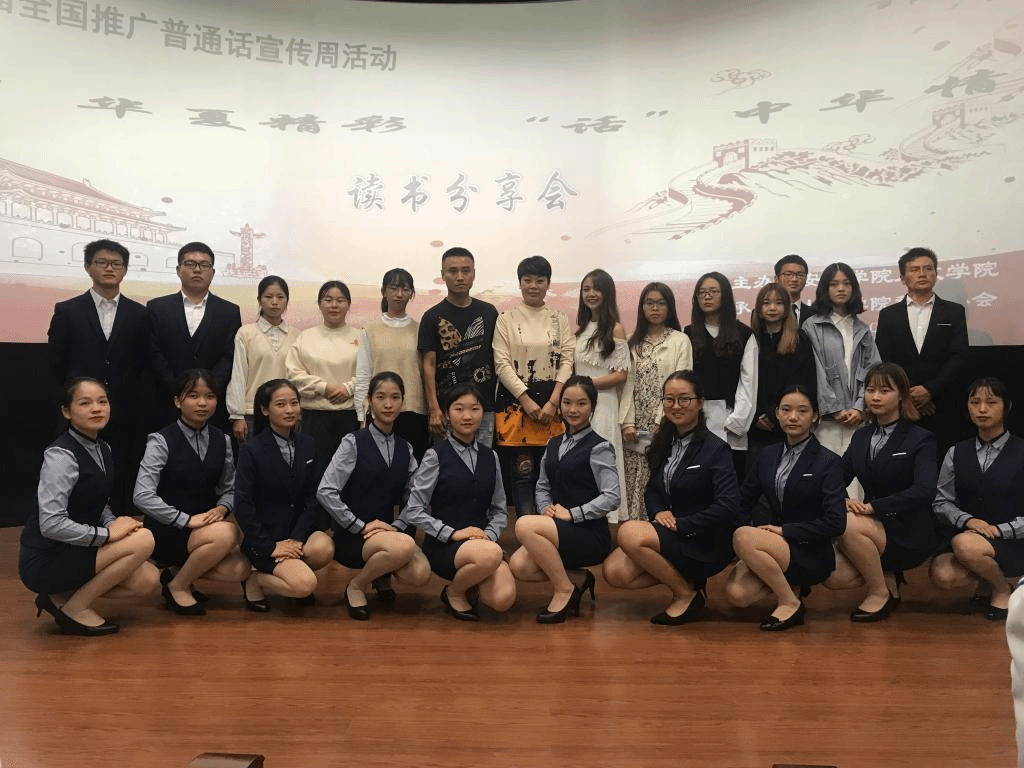 2019年9月19日,人文学院在旅游学院实训室成功举行了第22届全国推广普通话宣传周主题活动——“‘普’华夏精彩,‘话’中华情怀”读书分享会。人文学院院长胡赤兵,辅导员李聚刚老师出席了本次活动。