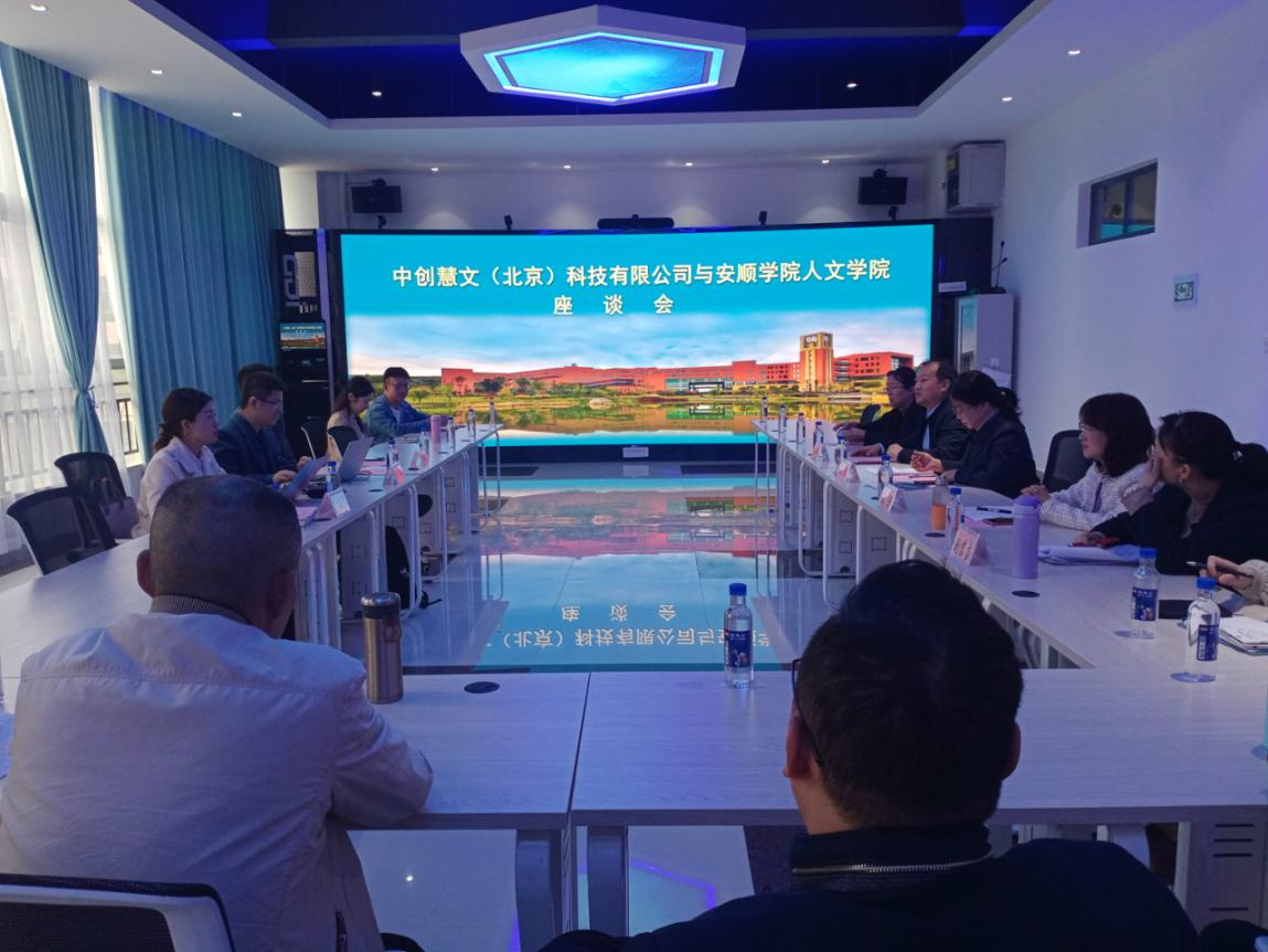 4月26日下午,人文学院与中创慧文(北京)科技公司在新综合实验大楼1-2-5室就秘书学专业建设举行了座谈会。中创慧文(北京)科技公司总经理郭向阳、项目经理张丽元、美亚联创(北京)科技公司项目经理安和江等,安顺学院科研处处长、秘书学专业学科带头人石恪教授以及秘书学专业教研室全体教师参加了座谈会。