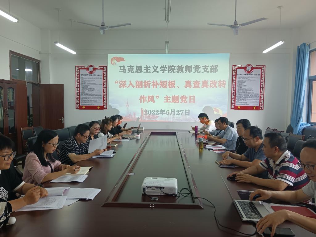 马克思主义学院教师党支部“深入剖析补短板 真查真改转作风”主题党日活动现场