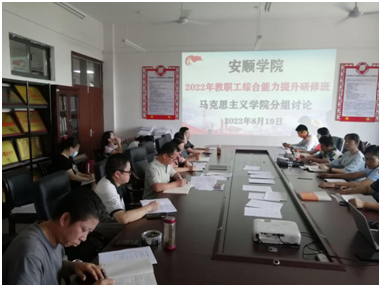 按照学校党委和行政的工作部署,结合安顺学院2022年教职工综合能力提升专题培训班工作要求,马克思主义学院于8月19日在马克思主义学院会议室组织开展了分组研讨交流会,研讨会由马克思主义学院党委书记王罡主持,马克思主义学院班子成员及全体教师参加研讨学习。