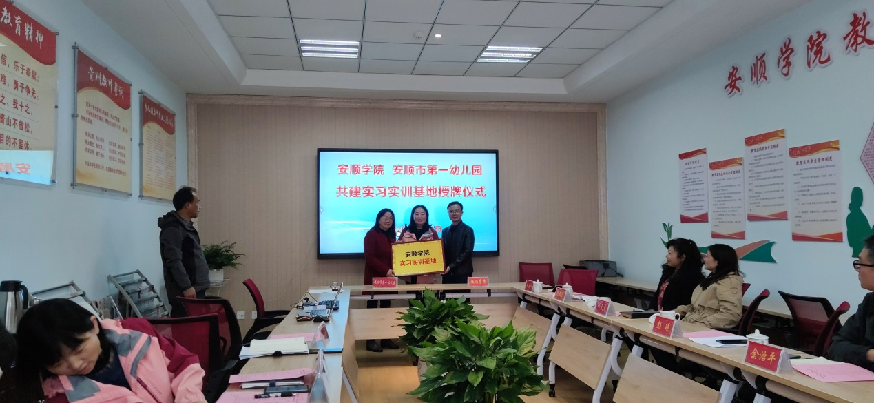 最后,双方对合作共建教育实践基地建设进行验收,并进行“安顺学院实习实训基地”授牌。
