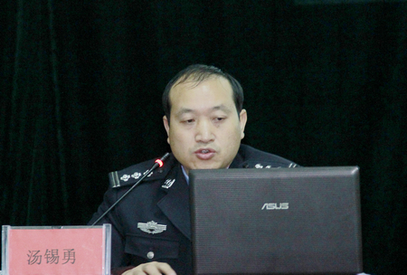 安顺学院保卫处副处长汤锡勇作讲座(学生记者梅晶 摄)