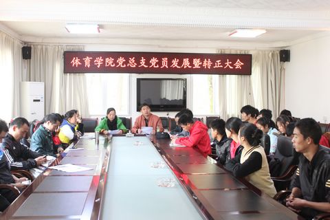11月25日中午,体育学院在行政楼会议室召开2013体育学院党总支党员发展暨转正大会。体育学院党总支书记杨莉莉,大学公共体育教育部主任邓文红,体育学院副院长罗勇、刘宁,大学公共体育教育部副主任梅正宗,体育学院学生党支部书记刘清德及学院教师党员、全体学生党员、入党积极分子参加会议。会议由大学公共体育教学部副主任梅正宗主持。
