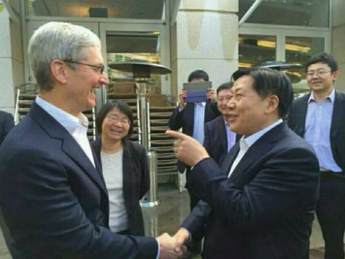 苹果公司CEO蒂姆·库克欢迎鲁炜到访。