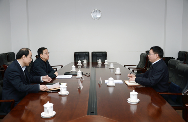 2月4日,中央第十一巡视组组长张化为,副组长刘立宪向华电集团党组书记、董事长李庆奎传达了习近平总书记关于巡视工作的重要讲话精神,并反馈了巡视情况。(中央纪委监察部网站 徐梦龙 摄)