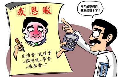 武汉工程科技学院给大一学生布置了一项算“感恩账”的寒假作业,让大学生计算从出生到大学毕业所花费的生活费、零用钱、学费等费用总和。有学生按照清单算完账后哭了,“从出生到毕业,我已经花了父母足足90万元”。
