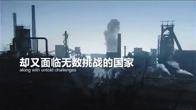 值得一提的是,制作者既谈到了成绩,又不回避问题。短片开头的一连串排比中,画面与文字相匹配,在通过长城、故宫、鸟巢、高铁等意象展现出一个古老而又快速发展的中国的同时,也通过贫困农民生活状况、工厂排出的黑烟、密集的人群和拥堵的车流等景象展现中国存在的问题。