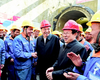 2月14日,李克强总理前往贵阳轨道交通1号线朱家湾站至大寨(简称朱大区间)施工现场视察。