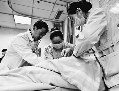 大年三十,甘肃省人民医院急诊科的值班医生在抢救急诊患者。 新华社记者 陈 斌摄