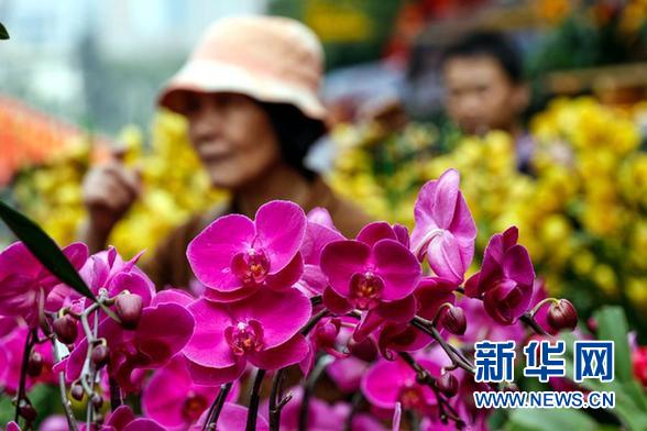资料图片:2月18日,深圳市民在深圳第三十四届迎春花市上挑选蝴蝶兰。广东人将迎春花市视作一年中最热闹的盛事,在大年初一前将喜庆的花卉带回家,被认为会给新的一年带来好运。 新华社记者毛思倩摄