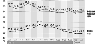 从2月份中国制造业采购经理指数(PMI)和非制造业商务活动指数整体来看,经济运行呈现向好迹象,随着节后企业生产经营活动恢复正常,经济走势有望逐渐筑底趋稳。