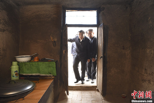 图为2014年3月27日,国务院总理李克强在内蒙古自治区翁牛特旗桥头镇太平庄村看望贫困户和老党员。刘震 摄