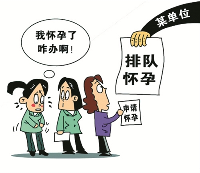 如此“排队怀孕”,引起网络吐槽一片。不少网民认为,限定女性生育的“霸王规定”已经渐渐成了用人单位约束女性员工的一把利剑,也成了不少女性进入职场的“拦路虎”。“在用人单位施加的压力面前,大多数人都陷入集体沉默,为了饭碗推迟生育似乎变得合情合理”。