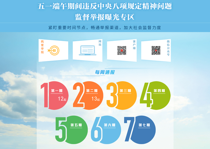通报的问题来自北京、天津、河北等13个省、市、自治区,涉及的问题包括违规发放津补贴及福利、公款吃喝、公款国内旅游、违规操办喜庆事宜、违规收受礼品、接受服务对象宴请等多种类型,其中不少案例发生在春节、“五一”、国庆等节假日前后,公开通报对于防止“五一”端午期间“四风”问题反弹具有较强的震慑作用。
