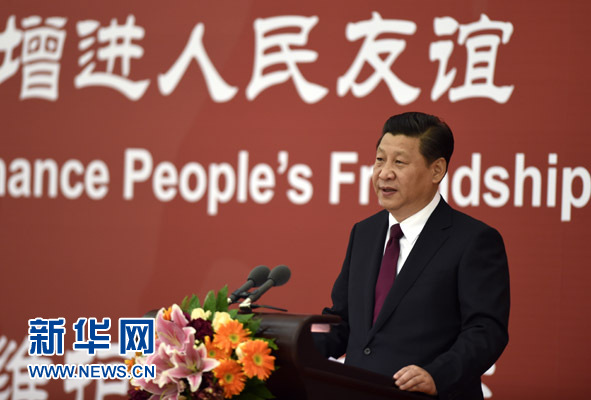 习近平指出,人民友好是促进世界和平与发展的基础力量,是实现合作共赢的基本前提。面对复杂多变的国际形势和严峻突出的全球性问题,各国人民需要加强友好交流,携手合作,同舟共济。中国将在实现中华民族伟大复兴的过程中,同世界各国一道,推动各国人民更好实现自己的梦想。中国将继续全面对外开放,推进同世界各国的互利合作,推动建设丝绸之路经济带和21世纪海上丝绸之路,实现各国在发展机遇上的共创共享。中国将大力开展中外文化交流,为推动人类文明进步作出贡献。