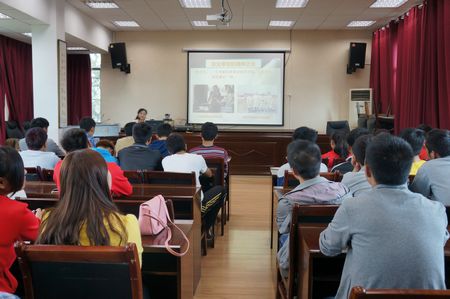 构筑精神高地,感受榜样力量。10月27日下午,安顺学院2014年度 “明礼知耻·崇德向善”道德讲堂第十场宣讲活动在学校水管所道德讲堂宣讲。安顺市、安顺学院道德讲堂宣讲员、安顺学院人文学院副院长伍微微教授为体育学院近百名师生作了“敬业奉献”专题宣讲。