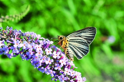 小蓟上的云粉蝶。 李元胜/摄影