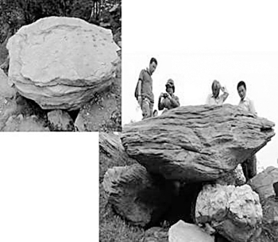 具茨山的叠石、石棚(以大鸿寨地点为代表,图13)、将军崖石棚和辽东半岛石棚之间明显存在着从简单随意和不规范到规范定型和进步这样一个巨石结构的进化发展过程,就类型学的逻辑关系来分析,这个过程所呈现的应该是一个时间上的差别。也就是说大鸿寨带凹穴的石棚从形制上来看应该远远早于将军崖石棚的年代,即至少是距今6000年之前的文化产品。