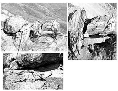 在具茨山地区,我们还发现许多大型的不规则独石、叠石、石圈、石棚等巨石遗迹,有些巨石遗迹上刻有凹穴岩画。刻有岩画的独石往往体积庞大,或位于山顶山脊、或孤立突兀地呈现在平地上。这种巨石尽管有岩画这样的人为痕迹,但多数独石(menhir)的形成,应该是自然力所致,即冰川、风蚀雨浸以及温差崩落等自然因素所致,但也有一些人力所为的巨石遗迹,如叠石和石棚便是人为所致。叠石是巨石遗迹中的一种常见类型,最著名的是英国康维尔的伯德明湿地(Bodmin Moor)有一处被称作“扭形奶酪”(Cheesewring)的石堆。具茨山亦发现一处明确的叠石遗迹,只是业已倒塌。叠石是由一系列大石片叠摞而成,最底部的一片巨石还位于原处,我们可以清晰看到其底部人工所为的支石,即便是在已经倒塌的大石片之间,也可见到垫在其间的支石。值得注意的是所有的支石石质与叠摞的大石片石质不同,这种支石是我们判定叠石、石棚以及独石等巨石遗迹的基本要素之一。在新郑、禹州、方城、泌阳、叶县、淇县等地也发现大量的此类刻有岩画的巨石,鉴于此类巨石本身所具有的景观考古学意义,所以在此我们将其专门列为一个岩画的门类,称之为巨石岩画。这类巨石岩画是一种活的文化化石,其上的凹穴岩画体现着古代人的信仰和观念,同时巨石本身还承载着包括现代人在内的文化认同,许多巨石前尚有现代人供香设施。(图11)