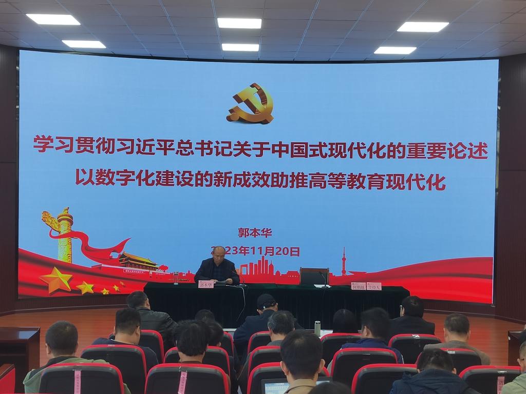 11月20日,安顺学院党委委员、副校长郭本华,以“学习贯彻习近平总书记关于中国式现代化的重要论述 以数字化建设的新成效助推高等教育现代化”为题,为学校分管学院、职能部门以及所在支部的全体教师党员作专题党课。安顺学院党委委员、党委组织部部长何朝越主持会议。
