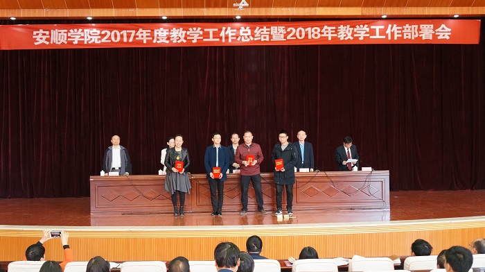 会上,熊国敏副院长宣读《安顺学院关于表彰2017年度优秀教学管理人员的决定》和《安顺学院关于表彰2017年度优秀实验管理人员的决定》,郭本华副院长宣读《安顺学院关于2017届本科优秀毕业论文(设计)指导教师评选结果的通知》和《安顺学院关于表彰2017年度优秀实习指导及带队教师的决定》,王芳恒副院长宣读《安顺学院关于表彰2017年度优秀教研室主任的决定》和《安顺学院办公室关于2017年教师教学技能现场教学比赛结果的通知》。与会校领导共同为获奖人员颁奖。