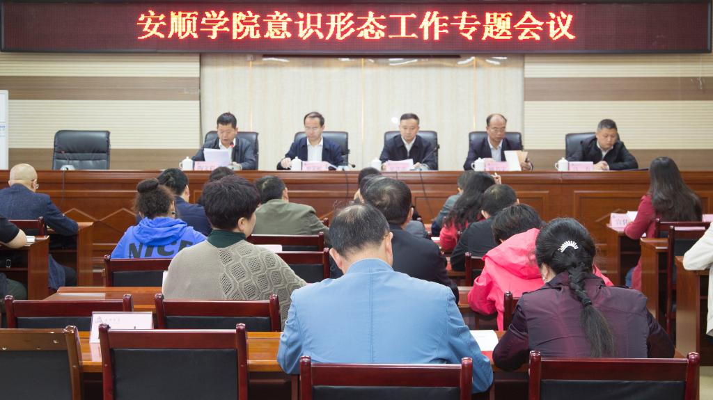 2018年9月28日上午,安顺学院在特教大楼七楼会议室召开意识形态专题工作会议。党委书记罗荣彬、院长吴次南、党委副书记陶文彩、副院长顾明宇、纪委书记马力,全校各部、处、室主要负责人,各二级学院党总支书记(副书记)、院长及宣传部全体人员参加会议。会议由陶文彩副书记主持。