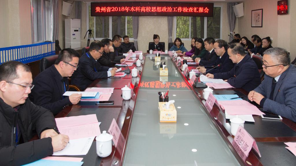 2018年11月29日,以贵州民族大学党委书记张学立为组长,兴义民族师范学院党委副书记李可迅为副组长,贵州大学团委书记龙汶、贵州师范大学求是学院党委书记尹毅、贵州民族大学组织部副部长、党建研究所所长刘勇为成员的贵州省普通高校思想政治教育工作检查专家组一行5人来到我校,对我校思想政治教育工作暨团学组织改革情况进行为期一天的检查。安顺学院党委书记罗荣彬、校长吴次南、党委副书记陶文彩、副校长令狐荣涛,各二级学院、各部、处室部门主要负责人,3位学生家长及思想政治教育工作迎检办成员全程参加检查工作。