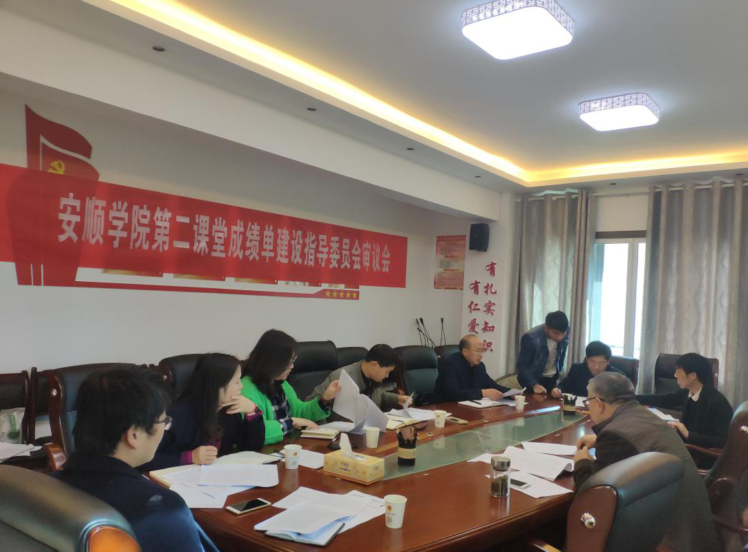 本次会议主要审议各院系、各部门“第二课堂成绩单”活动、学分申请审核程序、教务系统与“第二课堂成绩单”管理系统互联互通相关事宜、2018-2019学年度安顺学院“第二课堂成绩单”课程项目计划等内容。各部门负责人针对议题进行审议讨论。