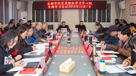 2018年12月7日,安顺学院党委书记罗荣彬主持召开安顺学院党委理论学习中心组专题学习会议,深入学习《防范和惩治统计造假、弄虚作假督察工作规定》,《中国共产党贵州省第十二届委员会第三次全体会议关键词解读》,《中华人民共和国宪法》,中共中央办公厅印发的《关于培育和践行社会主义核心价值观的意见》,中共中央办公厅、国务院办公厅印发的《关于进一步把社会主义核心价值观融入法治建设的指导意见》,习近平同志关于坚决整治形式主义、官僚主义的重要论述及相关文件以及中央有关文件精神。