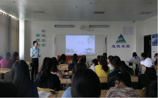 4月8日下午,安顺学院“安顺学院校史”专题讲座在学校道德讲堂举行。安顺学院外国语学院辅导员王旭主讲,外国语学院学生听讲。