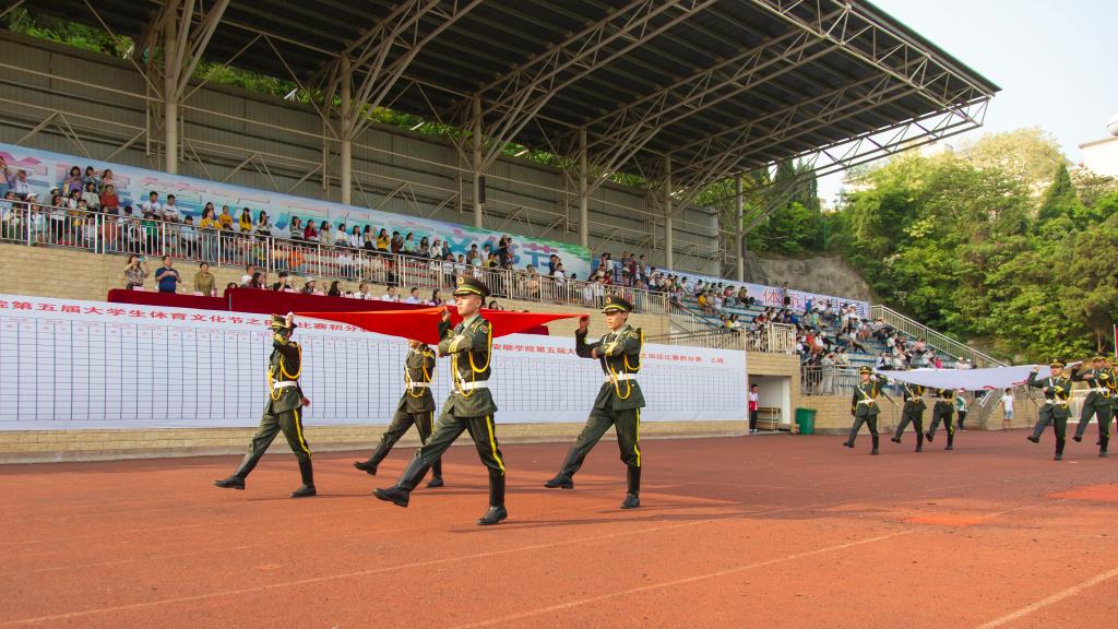 伴随着振奋人心的《运动员进行曲》,国旗、校旗、彩旗队迈着矫健的步伐进入会场,拉开了安顺学院第五届大学生体育文化节开幕会的帷幕。各方队、教职工代表队、各学院代表队相继入场,庄严的升旗仪式激起全场人员的爱国热情。