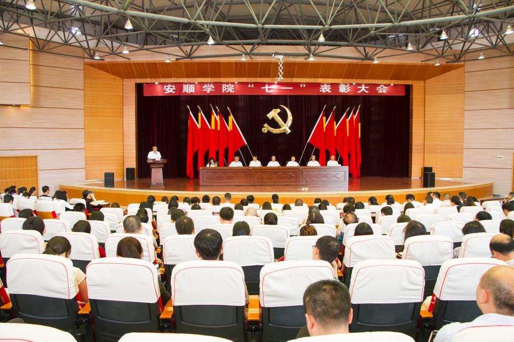 2019年7月2日下午,安顺学院在学术报告厅隆重召开“七一”表彰大会。安顺学院党委书记罗荣彬同志,校长吴次南同志,党委副书记陶文彩同志,副校长顾名宇同志,副校长令狐荣涛同志,副校长郭本华同志,纪委书记蔡红英同志出席会议。全校副科级以上干部,受表彰的党员、党组织书记参加会议。会议由吴次南校长主持。