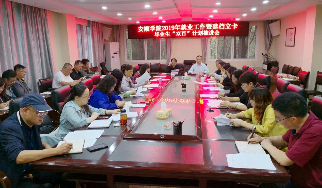 7月12日上午,安顺学院召开2019届毕业生就业工作暨建档立卡毕业生“双百”计划推进会。校党委书记罗荣彬、校长吴次南、副校长令狐荣涛出席会议,招就处及各二级学院党政主要负责人参加会议。会议由令狐荣涛副校长主持。
