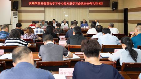 2019年7月18日,安顺学院党委书记罗荣彬主持召开安顺学院党委理论学习中心组专题学习会议,传达学习中央相关文件精神,《全面加强党的领导和党的建设》,《推动社会主义文化繁荣兴盛》和《习近平新时代中国特色社会主义思想三十讲》第十六、十七、十八、十九、二十讲。