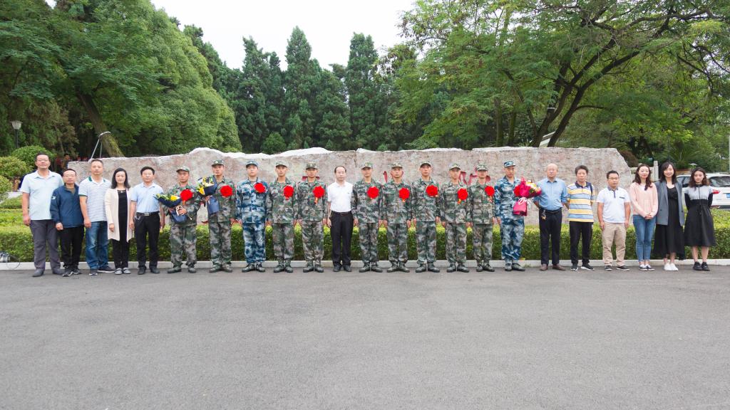晨曦已微露,男儿好出征。9月14日早7时,我校2019年第二批起运新征大学生士兵在学校大门内校名墙前完成集合,准备踏上赶赴军营的行程。入伍同学的亲人、所在学院党政负责人和辅导员班主任以及部分同学,学校武装部和宣传部有关同志参加欢送。