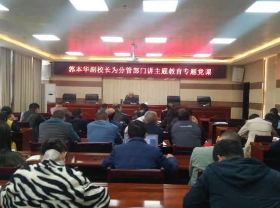 2019年11月5日,根据“不忘初心、牢记使命”主题教育工作的安排,为了扎实推进全体党员围绕“守初心、担使命,找差距、抓落实”切实搞好主题教育,安顺学院副校长郭本华为分管(联系)部门(单位)讲题为《坚持坚定正确的政治方向 落实立德树人根本任务——在“不忘初心、牢记使命”主题教育专题党课上的辅导报告》的专题党课。资源与环境工程学院、继续教育学院、教务处、后勤处、保卫处、图书馆、实验管理中心、博物馆、档案馆等部门党员共80余人参加本次专题党课。