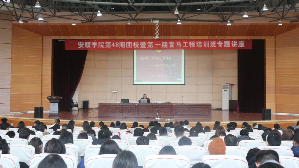 2019年11月20日下午,安顺学院党委委员、副校长令狐荣涛以“新时代、新青年、新使命”为主题在学术报告厅为第四十八期团校暨第一期青年马克思主义者工程培训班做专题讲座。讲座由校团委副书记胡蕾主持,700余名学生听讲。