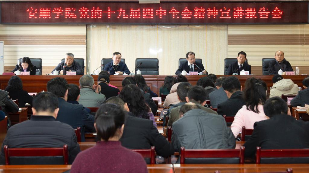 2020年1月11日,安顺学院举办党的十九届四中全会精神宣讲报告会。安顺学院党委书记罗荣彬为全校处级领导干部作宣讲报告。宣讲报告会由安顺学院校长吴次南主持。