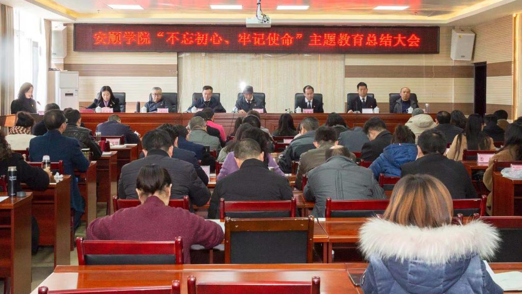 为深入学习贯彻中央、省委、市委“不忘初心、牢记使命”主题教育总结大会精神,认真总结回顾我校主题教育取得的成效经验,巩固主题教育成果。2020年1月11日下午,安顺学院党委在特教大楼七楼会议室召开“不忘初心、牢记使命”主题教育总结大会。省委第四巡回指导组副组长杨昌儒、安顺学院党委领导班子成员、市委主题教育办刘镱同志出席会议。安顺学院正处级干部和主持工作的副处级干部参加会议。会议由安顺学院校长吴次南主持。
