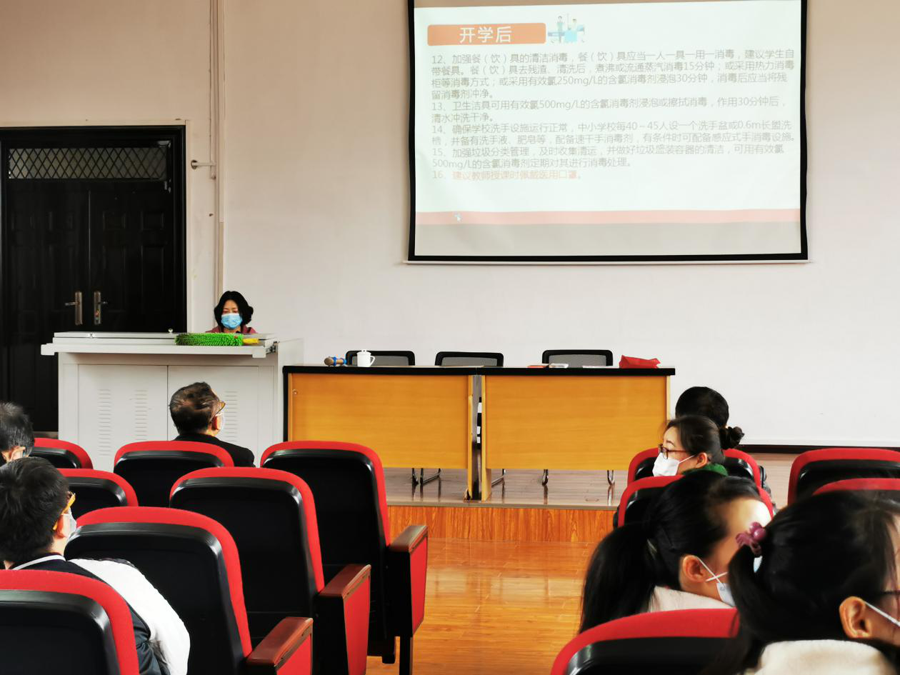 为了提高对新冠肺炎疫情的防控能力和水平,保障全体师生的身体健康和生命安全,确保高三年级顺利平安开学,2020年3月6日上午,安顺学院附中在多媒体教室开展教职工新型冠状病毒感染的肺炎疫情防控专题培训。西秀区东关卫生院副院长周弢出席会议并作专题培训。安顺学院附中党委班子成员、行政人员和高三年级任课教师、冀志高中教职工参加培训。