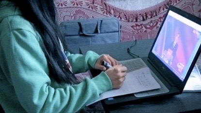 党员学生李小燕在习水县水田村村委会做志愿工作
