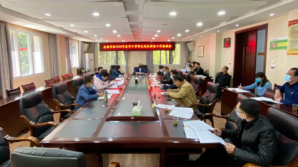 4月28日上午,安顺学院在行政楼二楼会议室召开2020年春季开学师生返校演练工作协调会。安顺学院副校长郭本华出席并主持会议,党政办、宣传部、工会、团委、学生处、教务处、人事处、保卫处、后勤处等部门主要负责人参加会议。