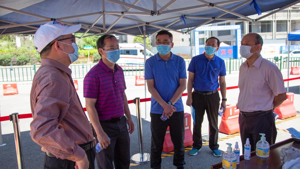 黄健一行实地查看了学校校门、食堂、学生宿舍等区域疫情防控措施落实情况,详细了解教师反岗、毕业生返校、师生健康状况摸排、食堂用餐、开学复课准备等情况。听取相关部门负责人工作汇报后,黄健一行对我校的疫情防控有力、有序、有效,复学复课科学统筹推进给予充分肯定,并提出指导性意见。
