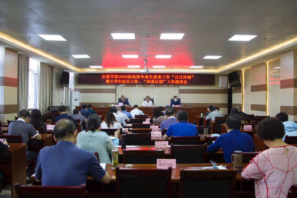 5月14日上午,安顺学院在特教大楼七楼会议室召开2020届高校毕业生就业工作“百日冲刺”暨大学生征兵工作、“西部计划”工作推进会。安顺学院党委书记罗荣彬、校长吴次南出席会议,安顺学院毕业生就业工作领导小组全体成员参加会议。会议由安顺学院副校长令狐荣涛主持。