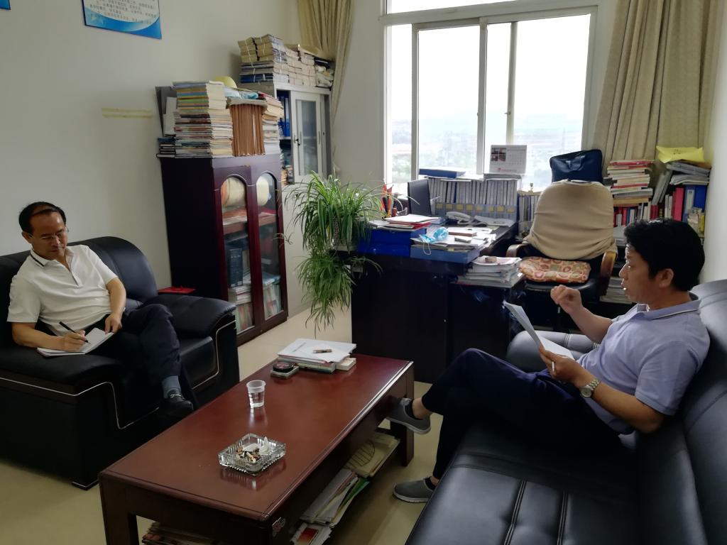 马克思主义学院党委书记、政法学院党委书记黎进深(右)向安顺学院党委书记罗荣彬(左)作工作汇报