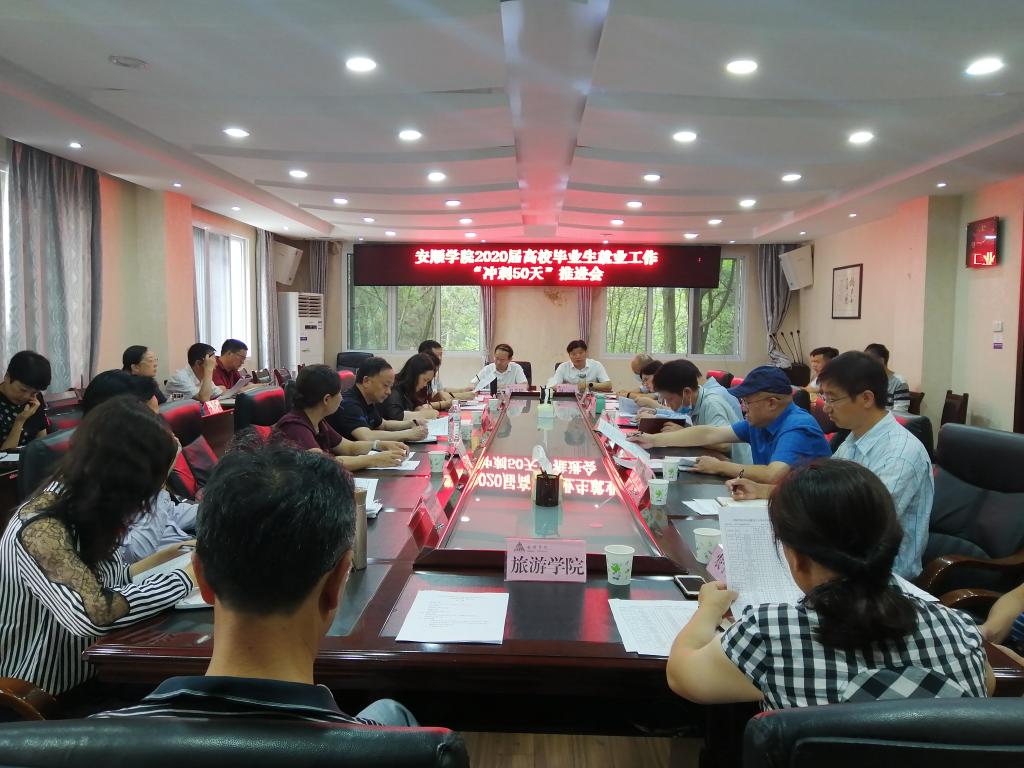 7月15日上午,安顺学院在行政楼二楼会议室召开2020届高校毕业生就业工作“冲刺50天”推进会。安顺学院党委书记罗荣彬、校长陈云坤、党委副书记陶文彩、纪委书记蔡红英、副校长韦英出席会议,各二级学院党委书记、院长参加会议,会议由陈云坤主持。